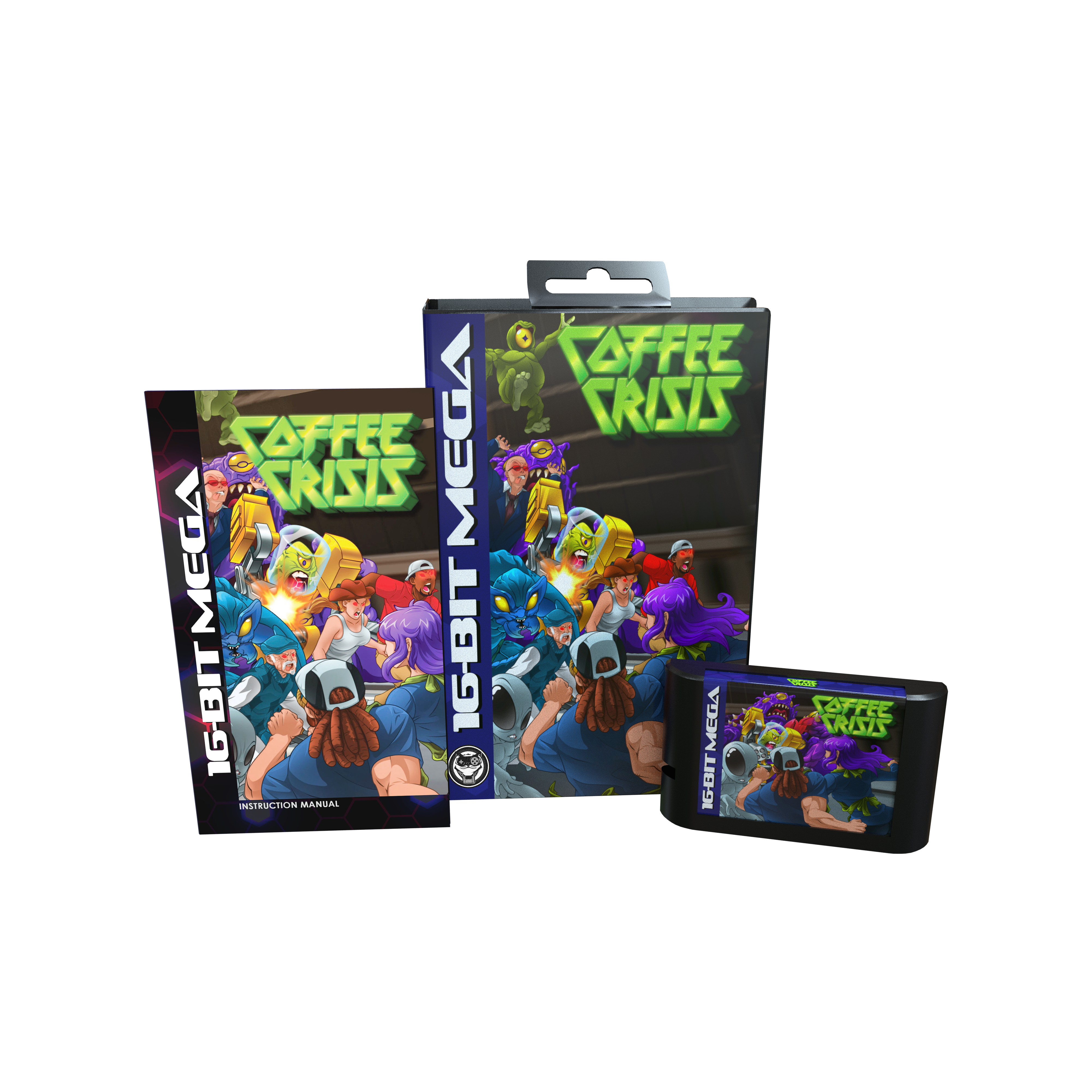 Coffee Crisis is an arcade-style beat 'em up full of caffeinated carnage! This is a full scale release for the Sega Genesis/Mega Drive, packed with classic gameplay and an extra espresso shot of action!